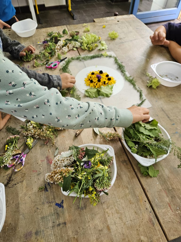 Aufgabe in WTK JG 3 : die Schülerinnen und Schüler sammeln Naturmaterialien und legen daraus Bilder.