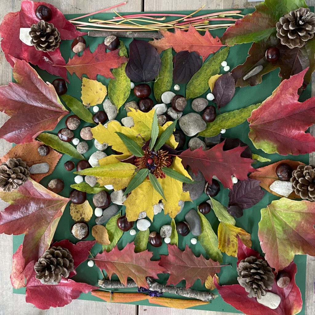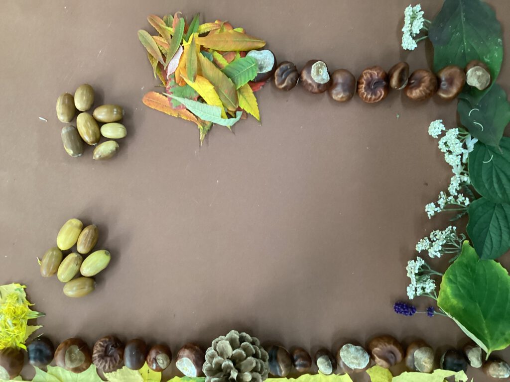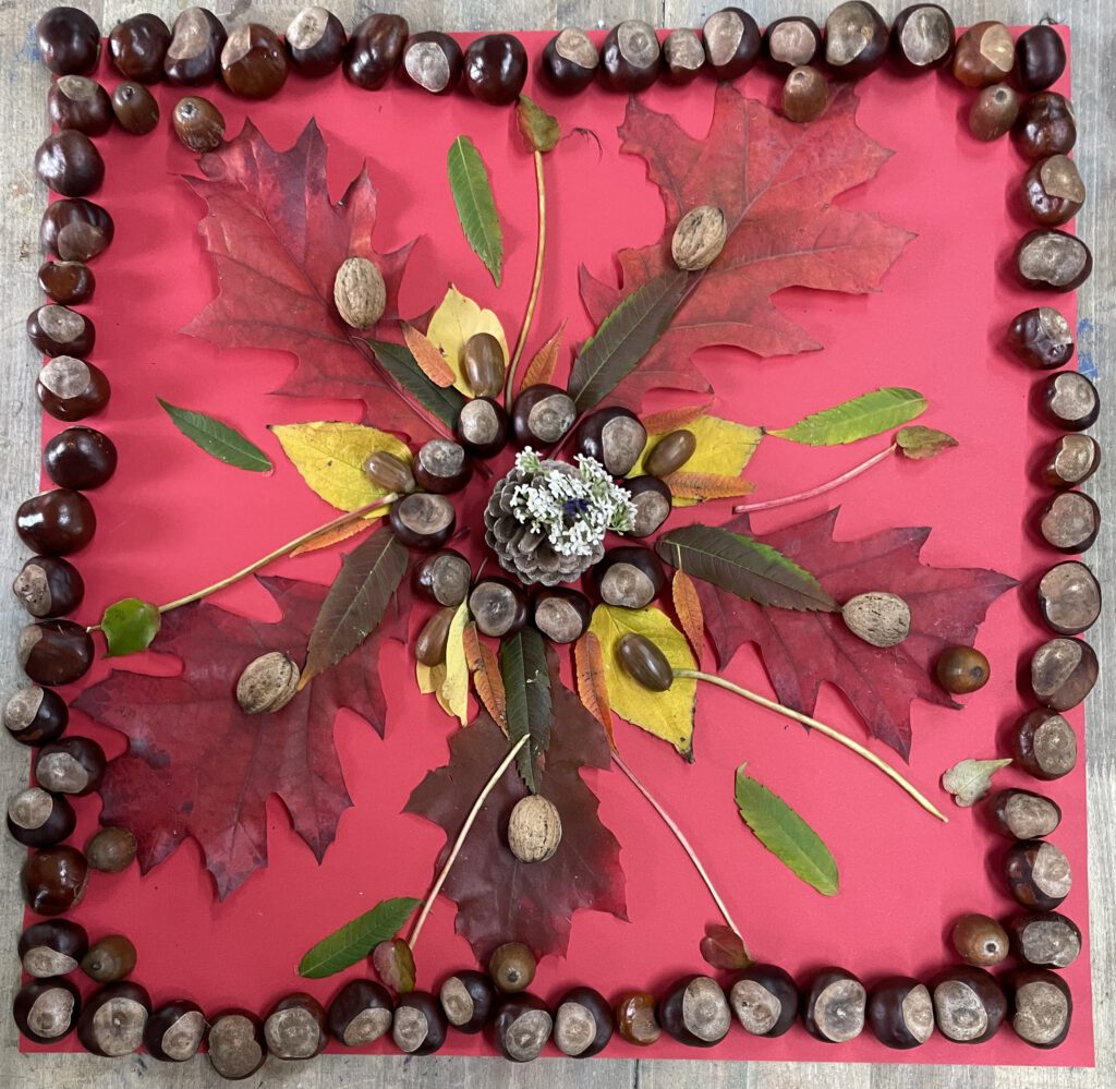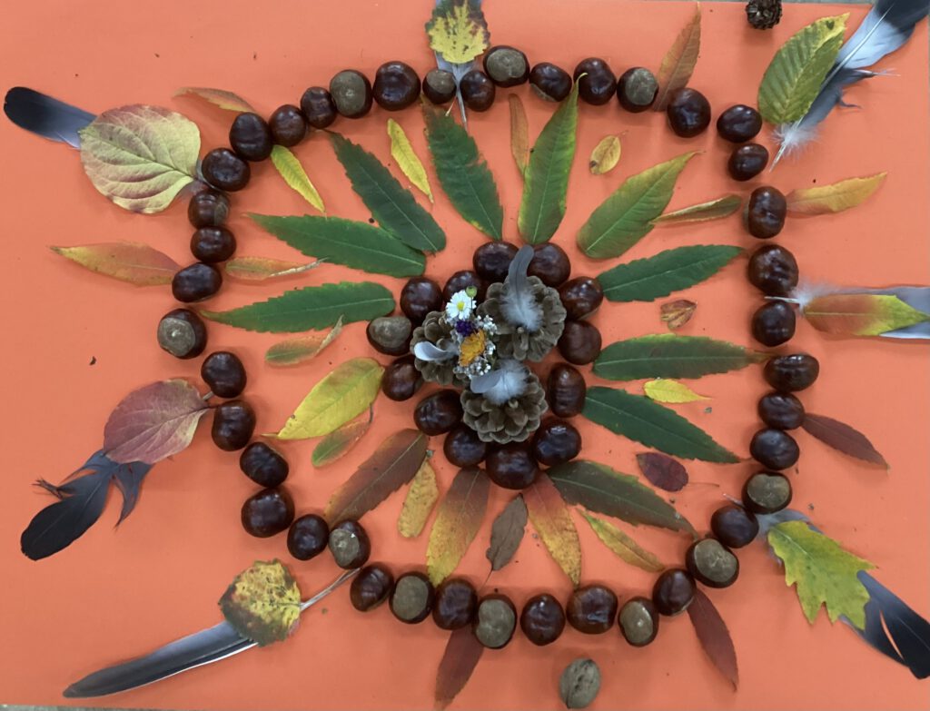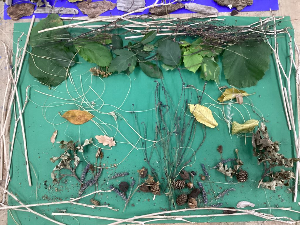 Aufgabe: die Schülerinnen und Schüler sammeln Naturmaterialien und legen daraus Bilder.