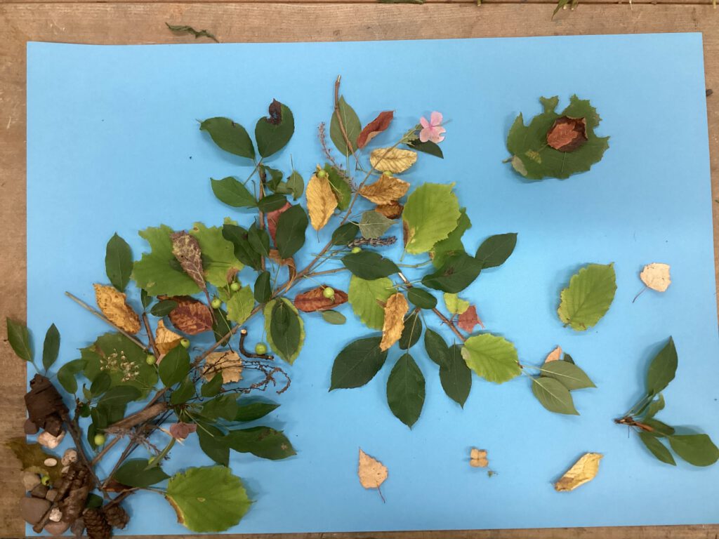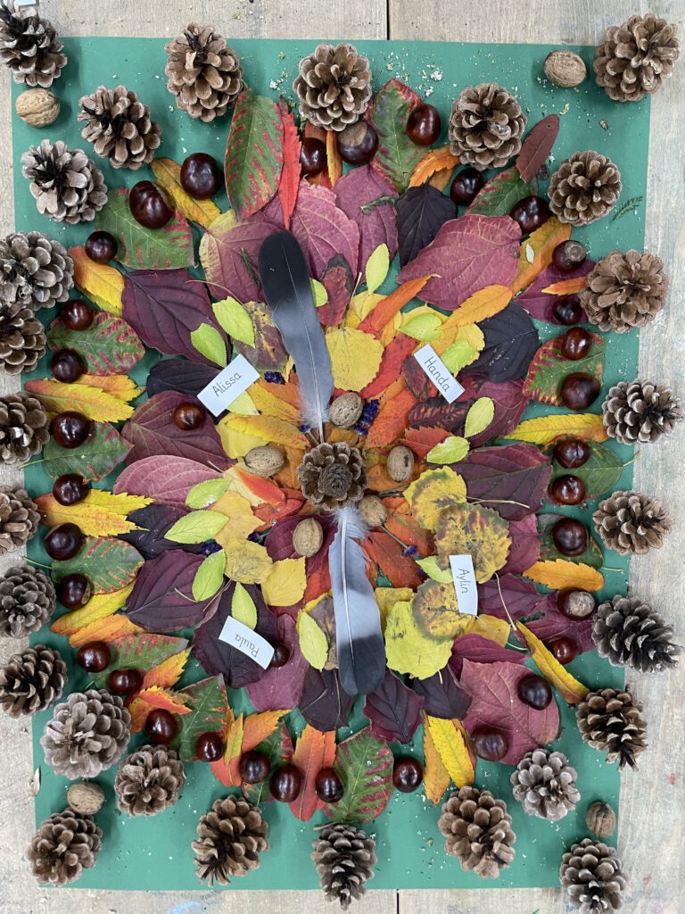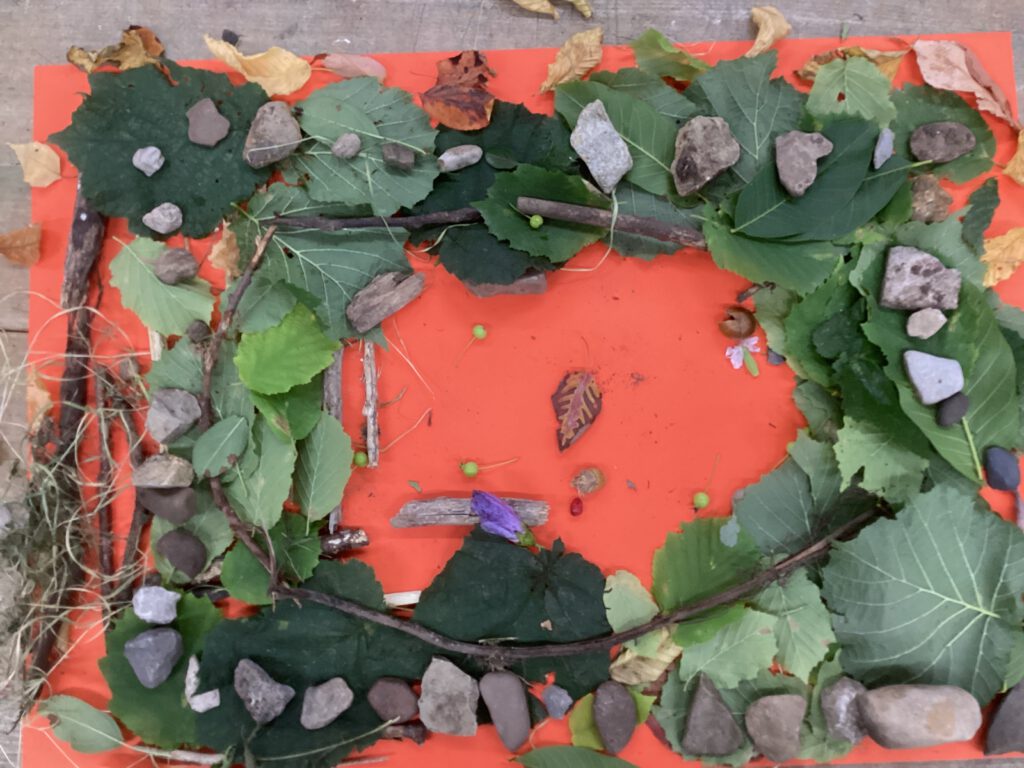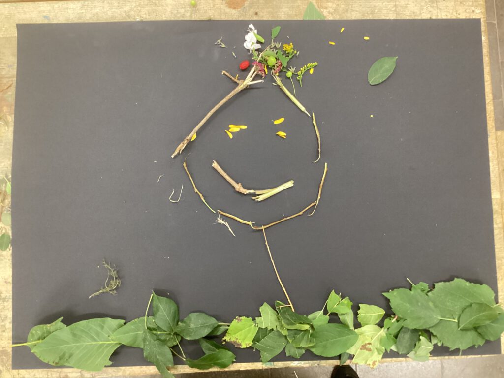 Aufgabe: Die Schülerinnen und Schüler sollten mit Material, welches sie auf dem Schulhof gesammelt haben, ein Bild legen.